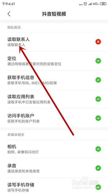 打开抖音的权限设置,把【读取联系人】给设置当作【拒绝】,这样打开抖音大师就看不到可能熟悉的人了。