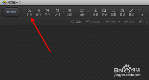 在电脑上打开光影魔术手客户端,点击右上角的 打开 。