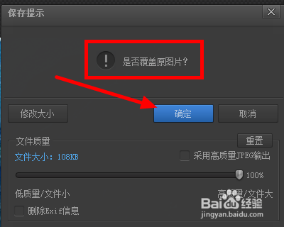 若是点击 保留 ,就会弹出一个对话框,提醒 是否笼盖原图 ,点击 确定 就会将原图笼盖。也就是说,不保留原图。