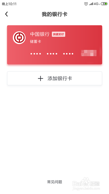 这样就当作功绑定了银行卡,返回我的银行卡界面后可看到绑定的银行卡。