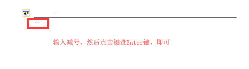 快速输入下划线的小技巧,其实Word有这样一个功能,只要你连着输入三个或以上的【-】(减号),然后回车(输入法在英文状况下),你就会发现Word可以快速的生当作一条下划线,操作图片步调如下。