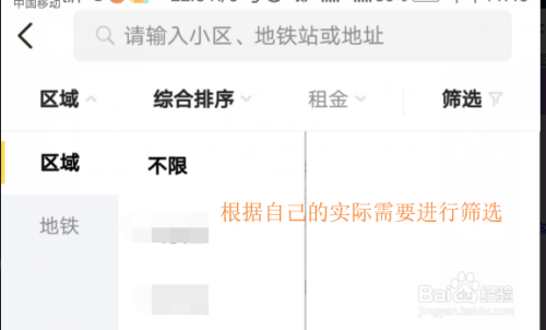 操作五:进入之后进行综合选择区域及其房钱规模,查找房源,操作图片如下。