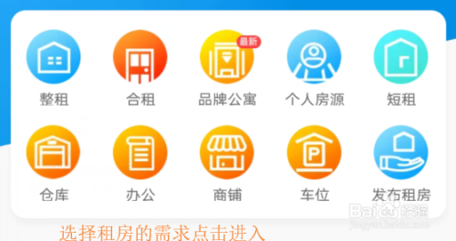 操作四:选择好需要租房的处所,选择需要租房的选项,点击进入,操作图片如下。