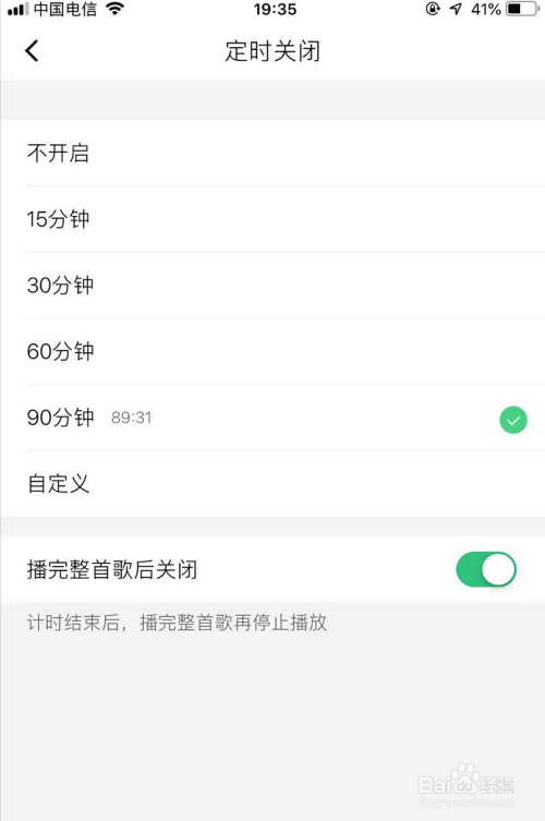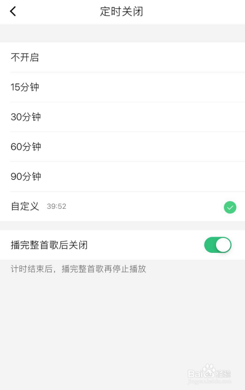 在按时封闭本家儿页下,有良多现当作的时候可以选择,如图所示。选好时候后,开启最下方【播完整首歌后封闭】功能!