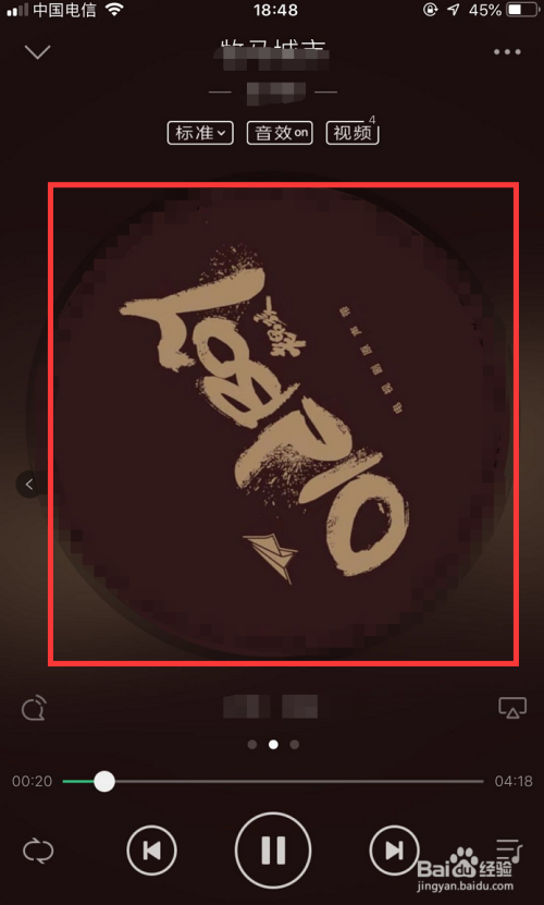 进入APP后,随便点开一首音乐的本家儿播放界面,如图所示,点击界面中心的大圆圈图标!