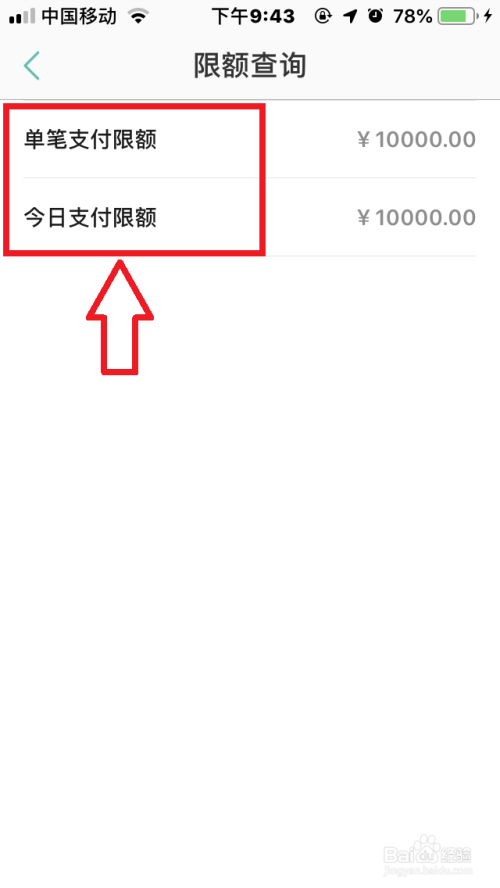 点击要查询的“银行卡”,进入“银行卡详情”。再点击银行卡下面的“限额查询”,即可查看“单笔付出限额”以及“今日付出限额”。