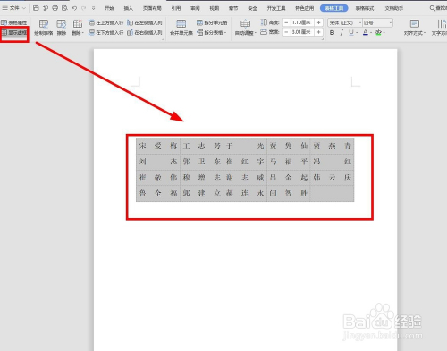 要去失落虚框,全数选中整个表格,单击菜单栏“表格东西”选项卡