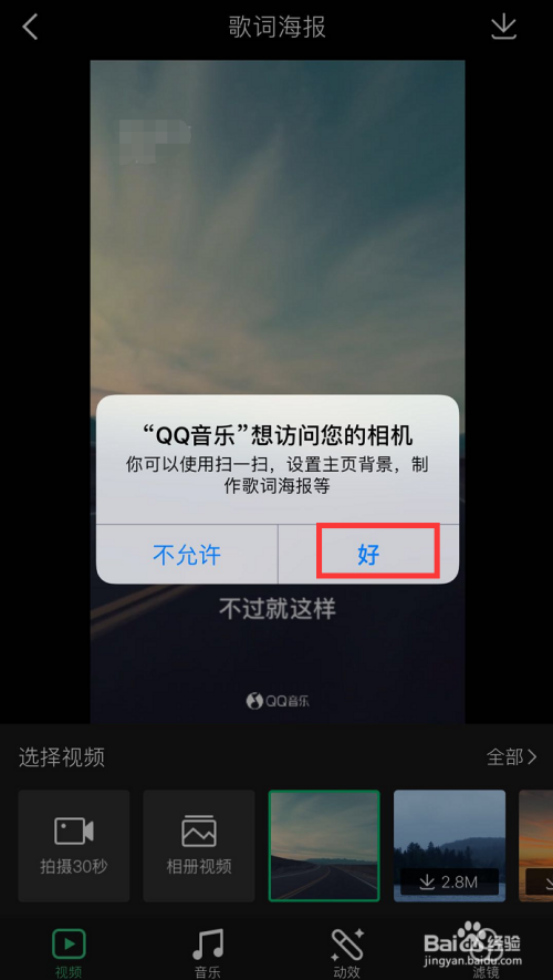 动态海报的动态布景可以按【拍摄30s】本身拍(要许可QQ音乐拜候相机),也可以选择手机相册中的视频,还可以用系统供给的动态模板,如图所示!