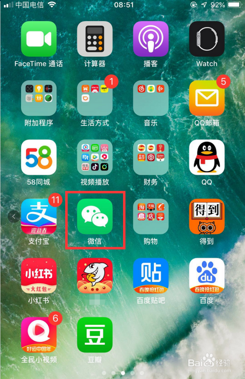 打开手机,在屏幕上找到【微信】APP,点击登岸微信,进入微信首页!