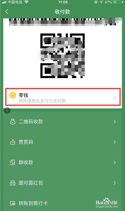点击收付条目后,在收付条目本家儿页下二维码的下方找到【优先利用此付出体例付条目】一栏,如图所示,点进去!