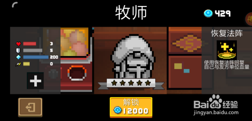 牧师,技术是恢复法阵,利用恢复法阵恢复本身和队友血量,12000宝石解锁。