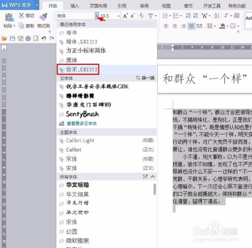 第三步:单击字体后的黑色小三角,按照本身的需要选择文字字体。