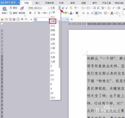 第四步:单击字号后的黑色小三角,按照需要设置字体的大小。