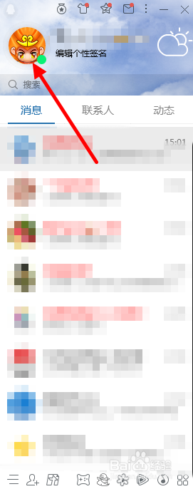首先在电脑上打开并登录本身的QQ,点击本身的头像。