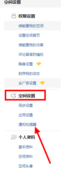 再鄙人一个页面的左侧导航栏中,点击 空间设置 下面的 通知和提醒 。