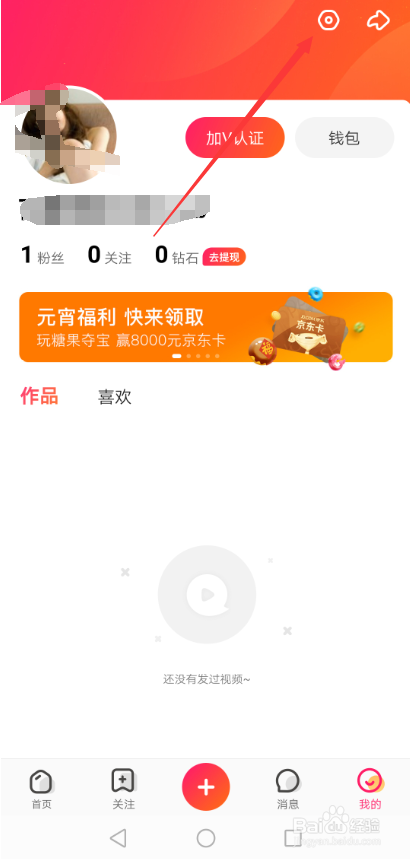 进入全平易近小视频我的界面后,直接点击右上角的【设置】图标,如下图所示。
