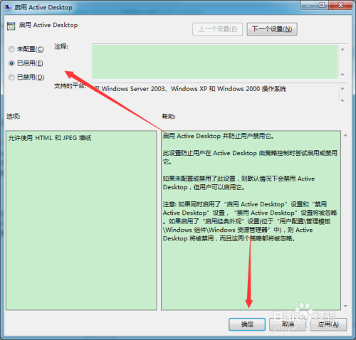 勾选“已启用”,并点击“确定”按钮。