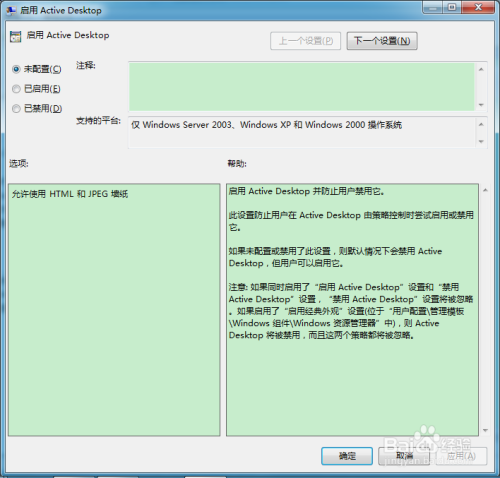 - 经由过程组策略设置装备摆设可以防止用户启用或禁用Active Desktop功能;