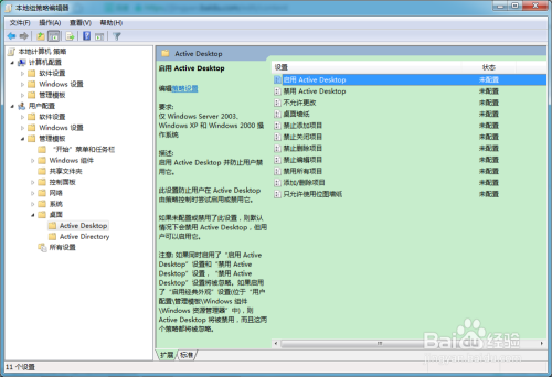 在右侧窗口中,找到“启用Active Desktop”设置装备摆设项;