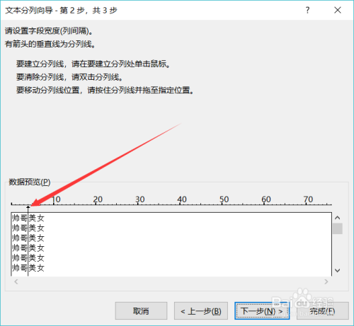 接着在你需要排列的处所鼠标左键单击一下添加一条朋分线,再点击下一步,如下图所示。