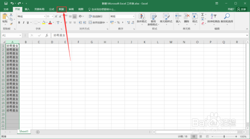 然后点击菜单栏中的【数据】选项卡,如下图所示。