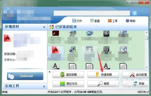 双击桌面快捷体例打开软件进入本家儿窗口,在已安装的程序中选择需要卸载的软件,在左侧可以查看安装日期和文件大小属性。