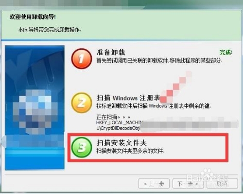 快速卸载分为三个步调完当作,包含筹办卸载、扫描windows注册表和扫描安装文件夹。