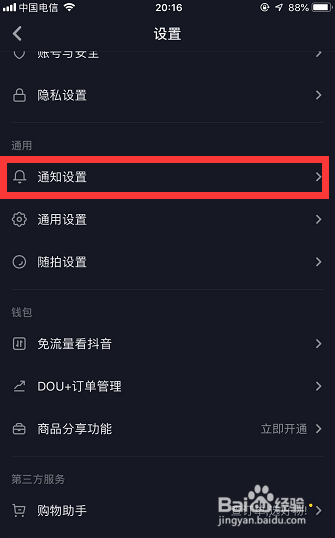 点击后进入设置本家儿页,找到设置本家儿页下的【通知设置】一栏,点击进入该栏!