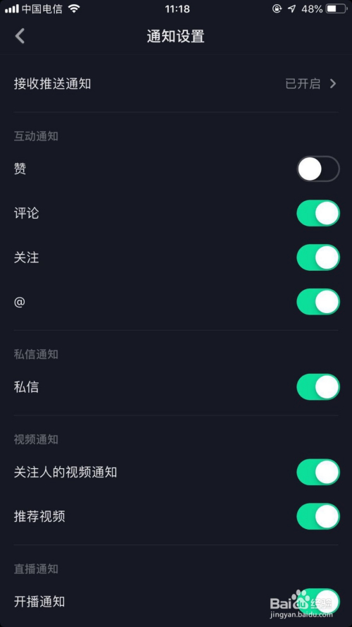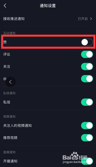 进入通知设置本家儿页后,封闭互动通知下的【赞】,如图所示。封闭后,在手机上就收不到他人的点赞动静啦!