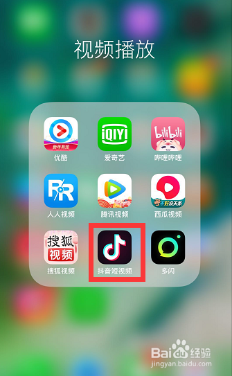 打开手机,在屏幕上找到如图所示的【抖音】APP,点击登岸,进入抖音首页!