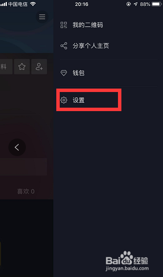 点击后,在屏幕右侧弹出一个如下图所示的界面,选择界面上的【设置】,点击它!