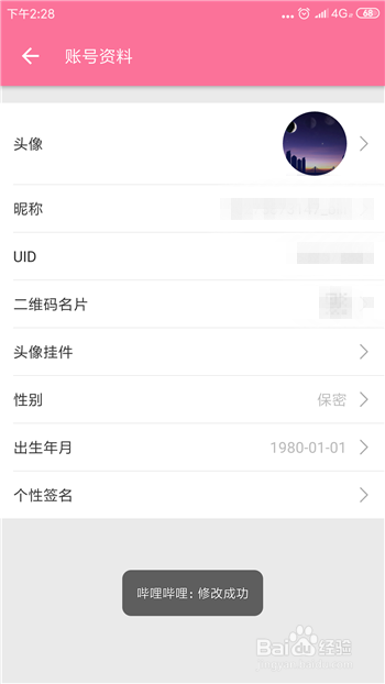 点击后会提醒点窜当作功,在头像选项后可看到新改换的头像。