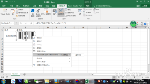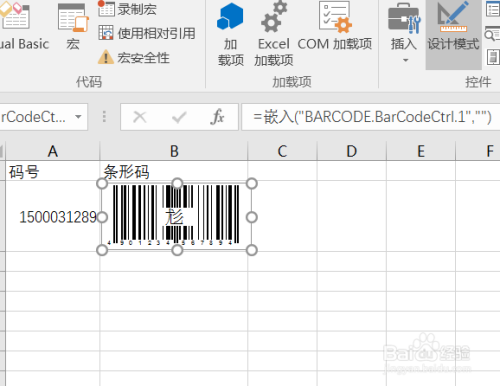 在Excel中利用microsoft barcode control控件可以完当作条形码的建造
