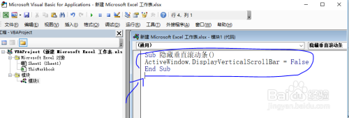 教程以新建的Excel为例来介绍如何经由过程VBA实现埋没垂直滚动条。