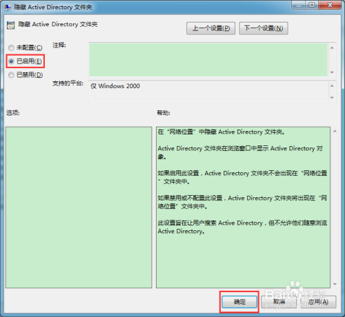 在组策略编纂器中,有一个设置装备摆设项——埋没Active Directory文件夹。启用该设置装备摆设项,即可埋没Active Directory文件夹。