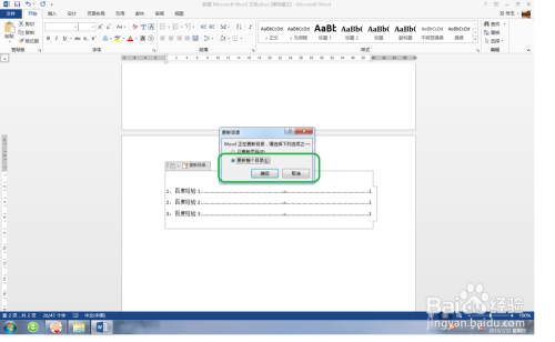 在弹出的信息中,勾选更新整个目次,点击确定,如图。