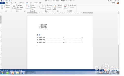 点击目次下的,更新目次,如图。