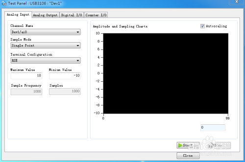 以上简单测试后,证实采集卡功能正常,下面讲解Labview的测试以及例子介绍,阿尔泰USB3106系列产物和Labview无缝毗连申明。