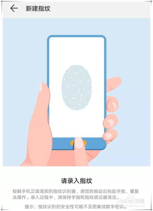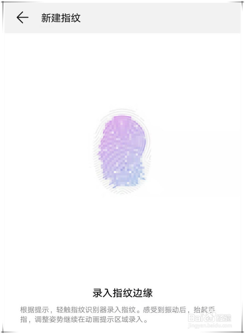 第五步,再鄙人方点击“新建指纹”,录入指纹信息,每台手机最多可以录入5个指纹。