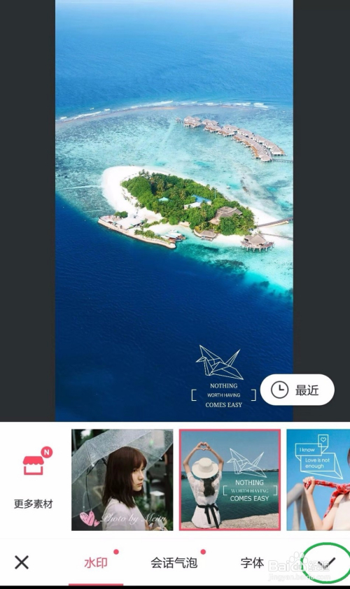 第六步:点击右下角的“√”,图片添加水印完当作。