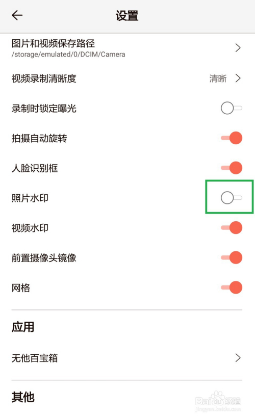 第四步:滑动“照片水印”后的滑块,封闭照片水印。