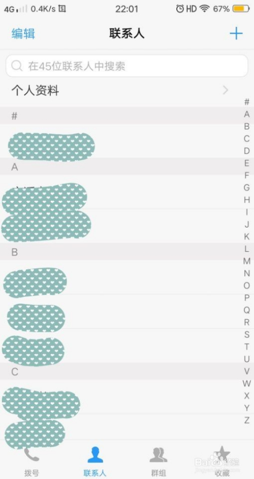 点击人头像,即可进入到手机联系人的页面,我们可以查看手机里已有的联系人。