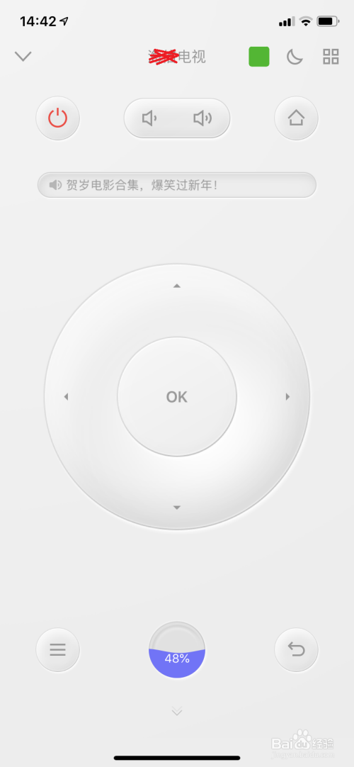 三、最后一步点击该软件下方中心按钮,进入遥控操控盘,确认一下是否毗连当作功,尝尝手机遥控器操控盘里的功能吧。
