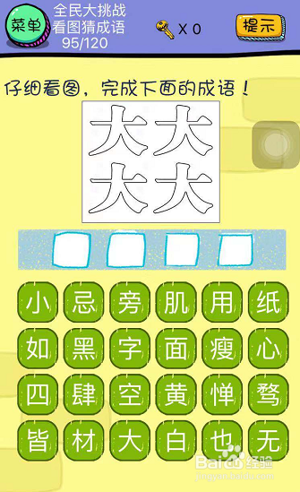 全平易近大挑战看图猜当作语良多人都不知道当作语谜底是什么,下面和大师分享全平易近大挑战看图猜当作语第94-95-96关对应的当作语
