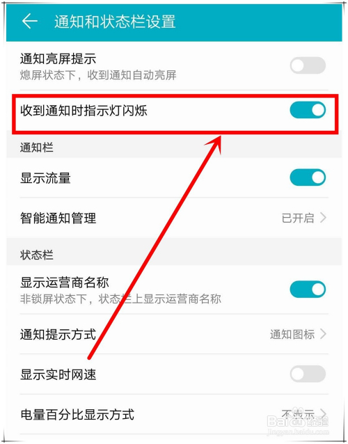 想要呼吸灯可以或许正常工作,首先需要开启“收到通知时指示灯烁”开关。操作方式如下: