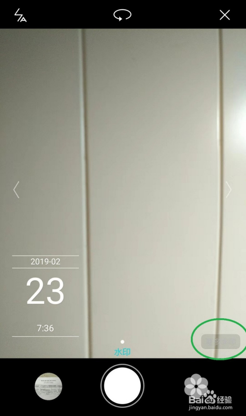 第四步:这样摄影的时辰就会呈现水印了,点击右下角“更多水印”,可以按照本身的爱好选择水印。