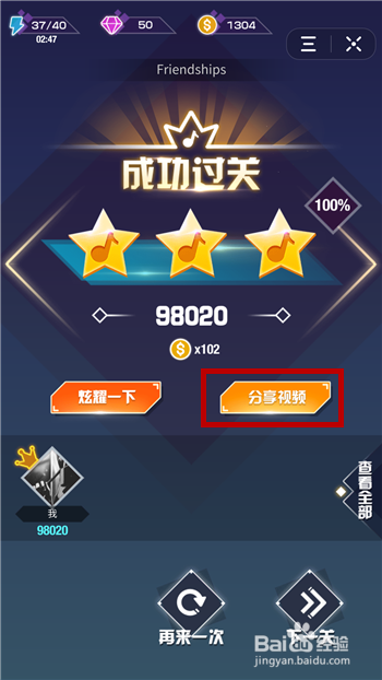 录制完游戏后可看到【分享视频】选项,点击该选项。