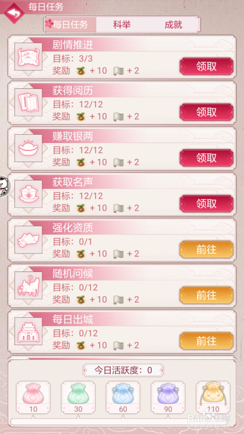 第二步:如下图所示,会展示出每日使命,完当作使命就可以领取奖励。