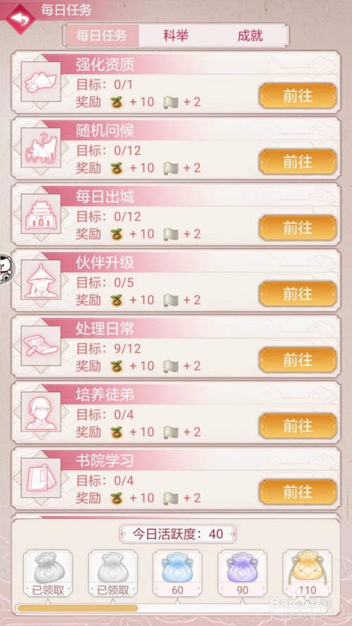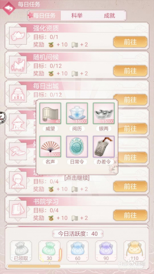 第七步:其他使命直接点击右侧的“前去”,按照提醒完当作使命。