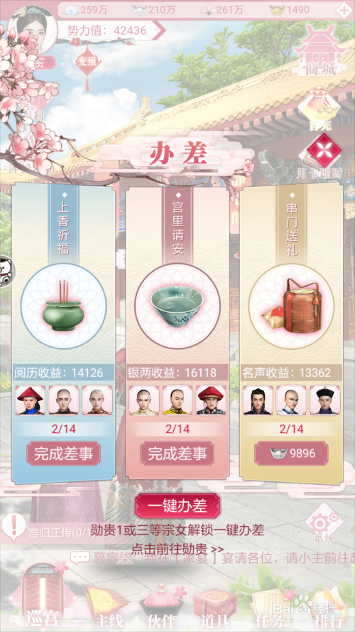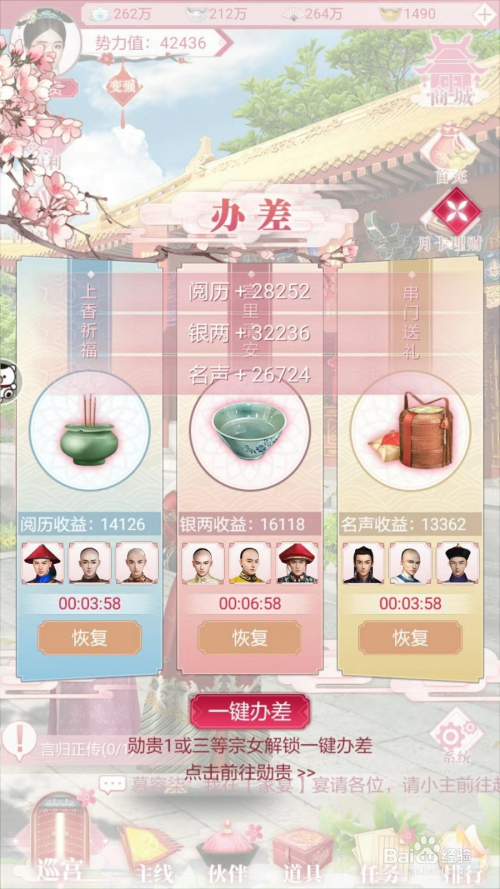 第四步:获得阅历、银两和名声都是在办差中获得。